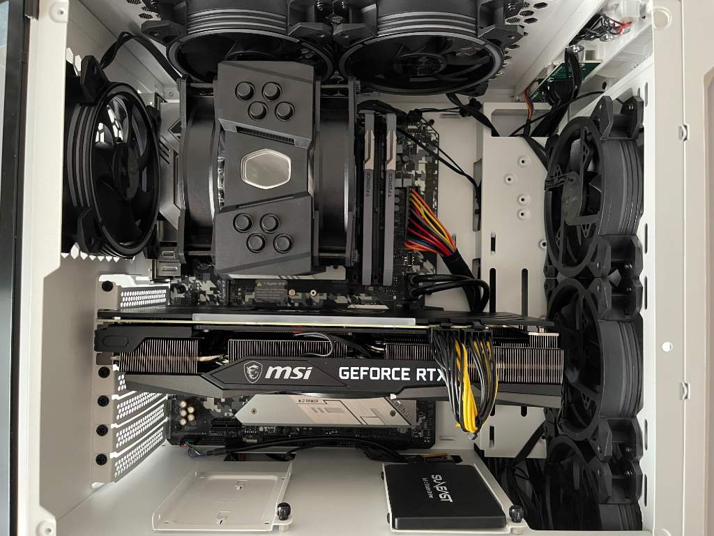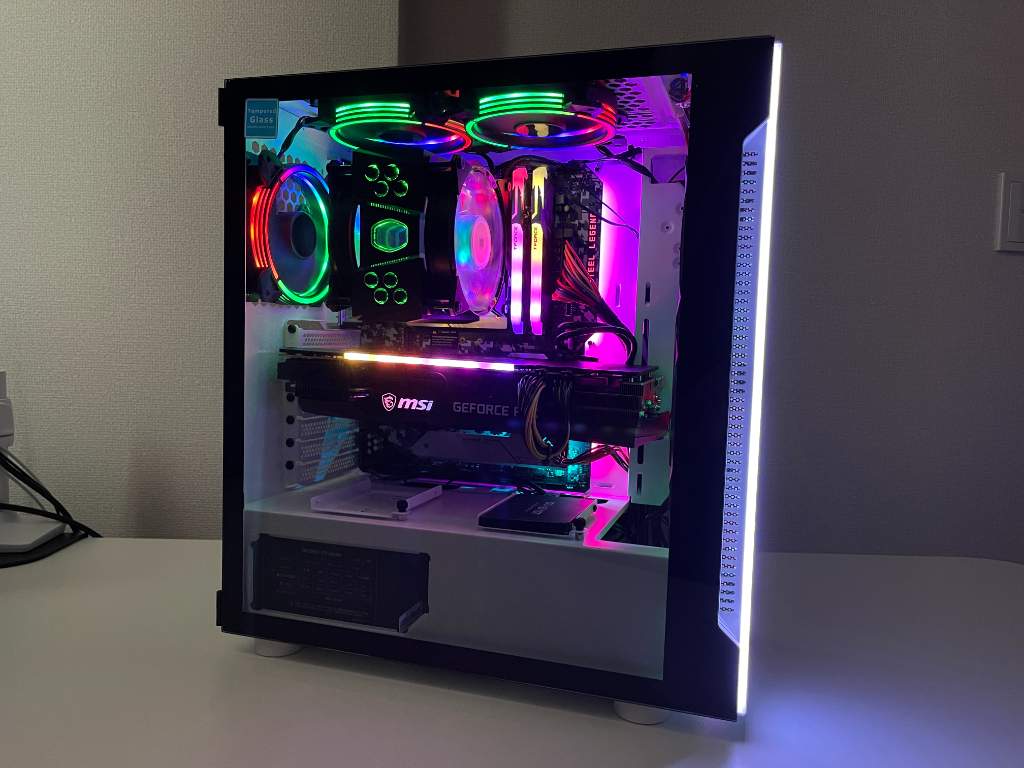 レビュー実機のCPUはCore i7-10700K、GPUはRTX 3070 8GB、メモリは16GB(LED仕様)、ストレージは256GB SSDと1TB HDDの構成です。