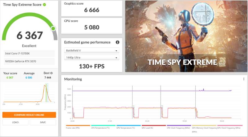 TIME SPYとTIME SPY EXTREME(DirectX 12)のテスト結果。